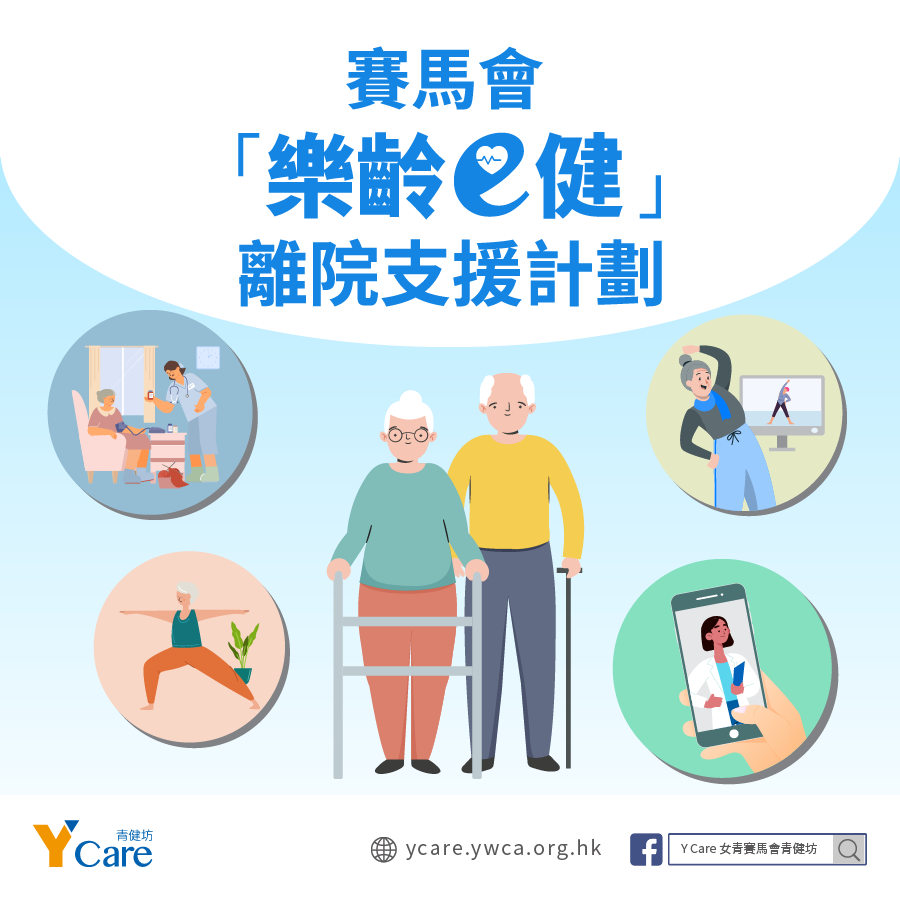 賽馬會「樂齡e健」離院支援計劃由香港賽馬會慈善信託基金捐助,為剛離院人士提供家居復康評估及訓練,配合自助復康訓練平台、照顧者培訓及遙距支援,於不受時間及地點限制下,達到持之以恆的復康效果。