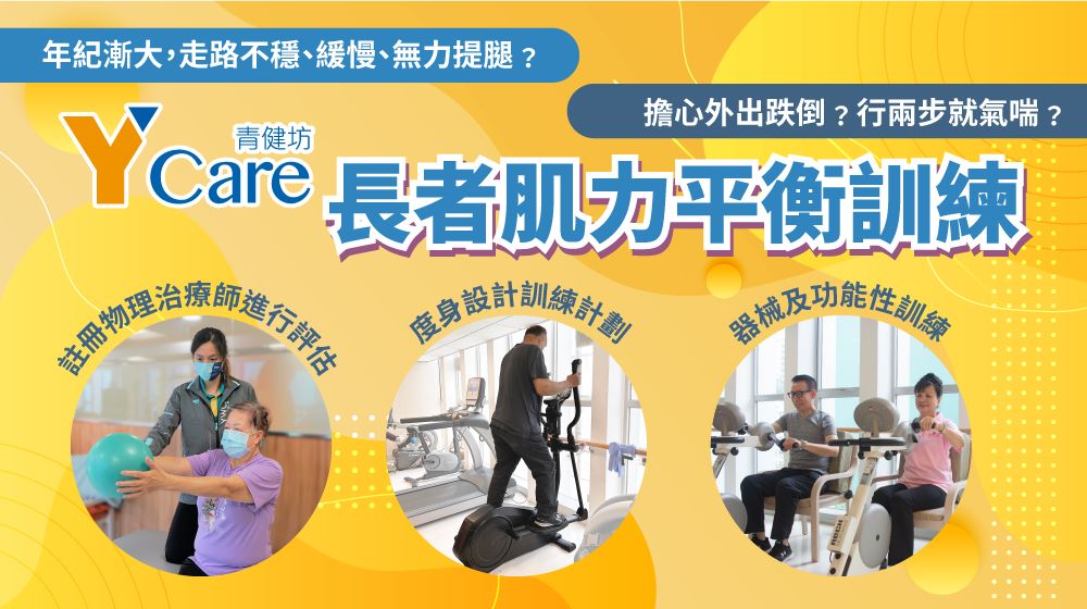 【Y Care 長者肌力平衡訓練】年紀漸大,走路變慢不穩,容易跌倒﹖雙腳無力,起步、站立感吃力﹖外出走不遠,容易氣喘、疲累﹖ 女青賽馬會青健坊「長者肌力平衡訓練」由註冊物理治療師進行評估,根據長者狀況,...