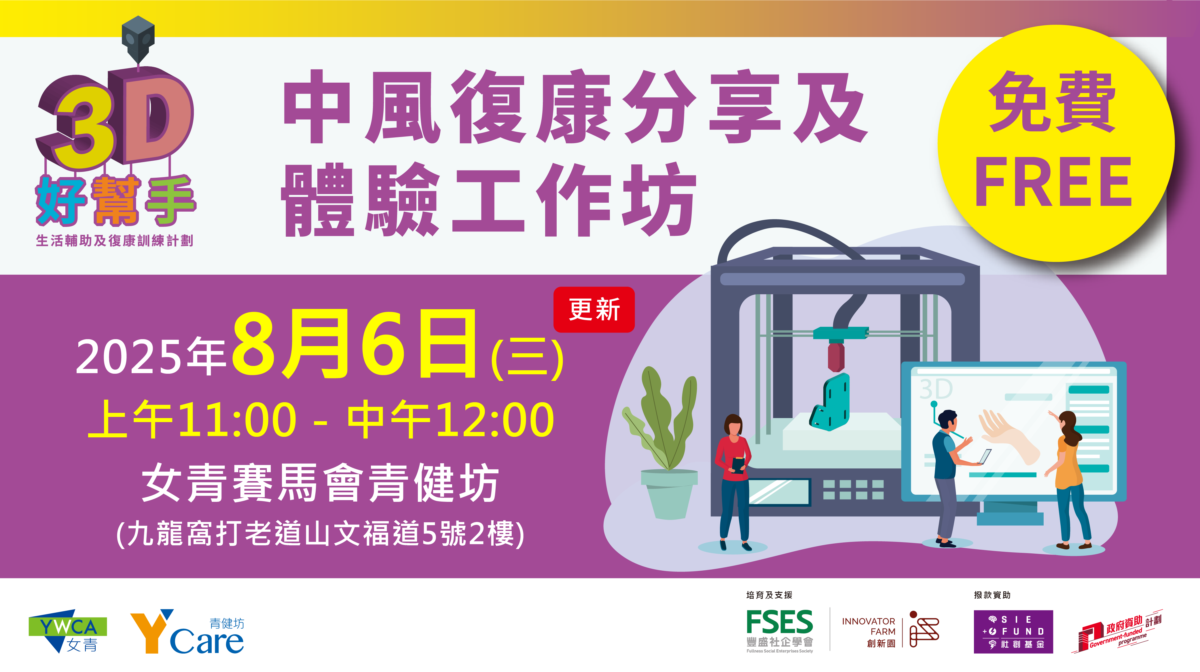 【3D好幫手 | 中風復康分享及體驗工作坊】開始接受報名﹗